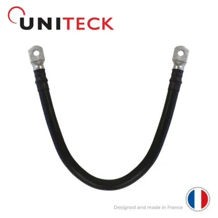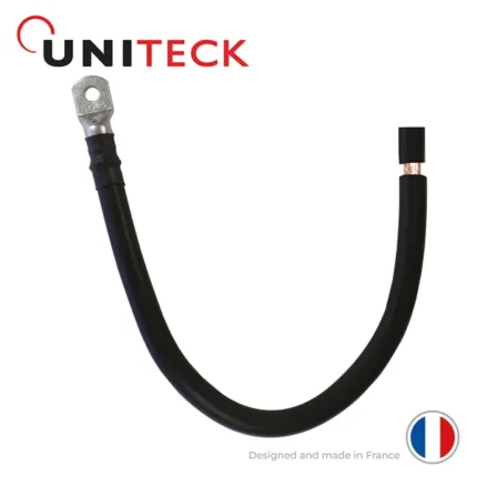 Câble de puissance UNITECK avec cosses M8 / M8, longueur 40 cm, pour liaisons batteries et équipements haute intensité en 12V, 24V et 48V. Cuivre extra souple, sertissage industriel.