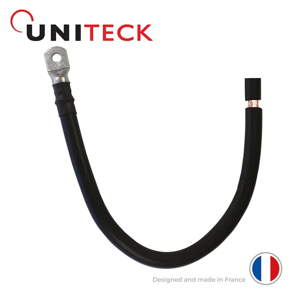 d’une extrémité nue (NU) côté équipement, permettant une adaptation propre sur busbar, convertisseur, chargeur DC-DC ou coupe-circuit.